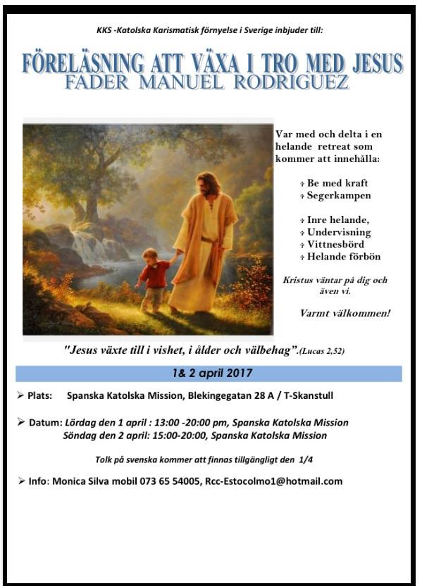 Event date: 4/1/2017 1:00 PM - 4/2/2017 8:00 PM Export event Bengt Malmgren / Tuesday, March 21, 2017 / Categories: CCR, Händelser Reträtt med f Emanuel Rodriguez 1-2 april Spanska missionen Stockholm Print 10289 Rate this article: No rating Please login or register to post comments.