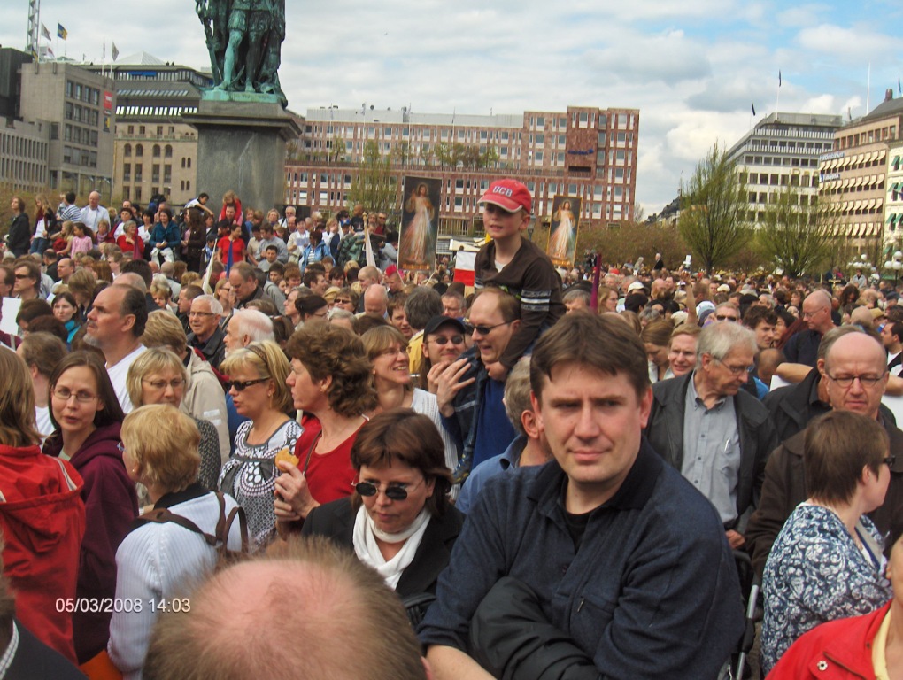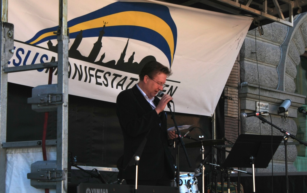 "There was a great ecumenical public event on Saturday 3rd of May 2008 in Stockholm: The Jesus-manifestation. There is a very dynamic process of ecumenical relations in Sweden, and the idea of having this public manifestation of unity and proclaiming Christ to the world came from a Pentecostal pastor, Stanley Sjöberg, and many Christian denominations and groups took part in this event which demonstrated a unity not only between the denominations, but also between different language-groups in our multi-cultural Swedish society. About 15.000 persons took part in this great manifestation. It began with public meetings on different squares in Stockholm and finished with a grand manifestation in Kungsträdgården, a park in the centre of Stockholm."
