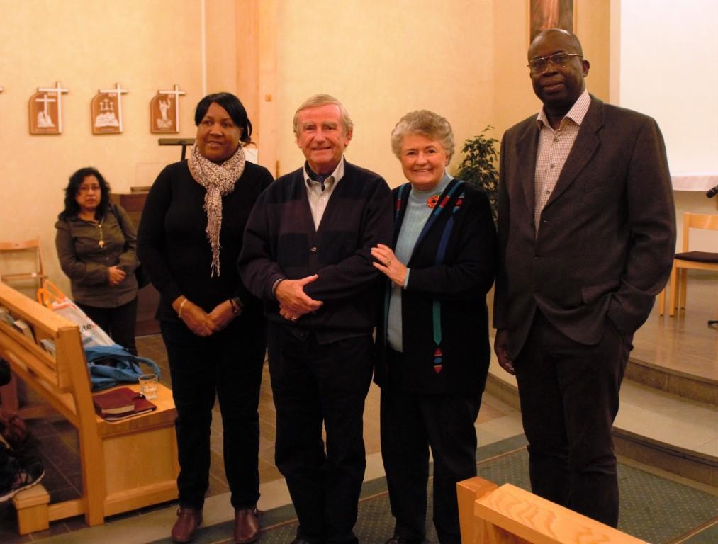 Bilden: Charles och Sue Whitehead flankerad av Bola och Maria Richards från Domkyrkans bönegrupp. Till vänster Ruth Gillegård, KKS ordförande.